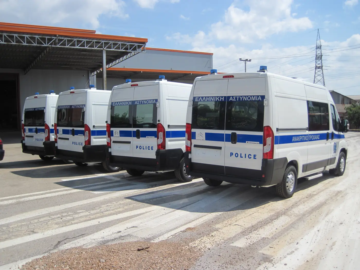 Η πολυετής εμπειρία μας στην κατασκευή υπηρεσιακών οχημάτων εγγυάται τη μέγιστη λειτουργικότητα και συμμόρφωση με τις αυστηρές επιχειρησιακές απαιτήσεις των σωμάτων ασφαλείας.