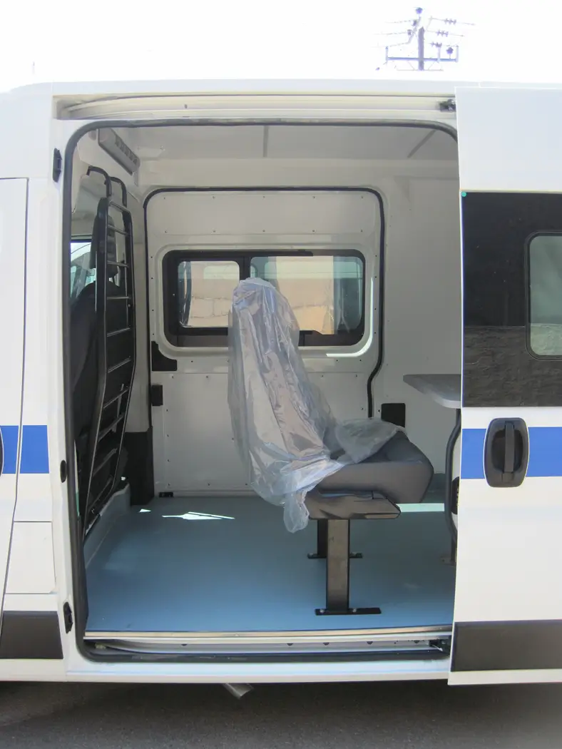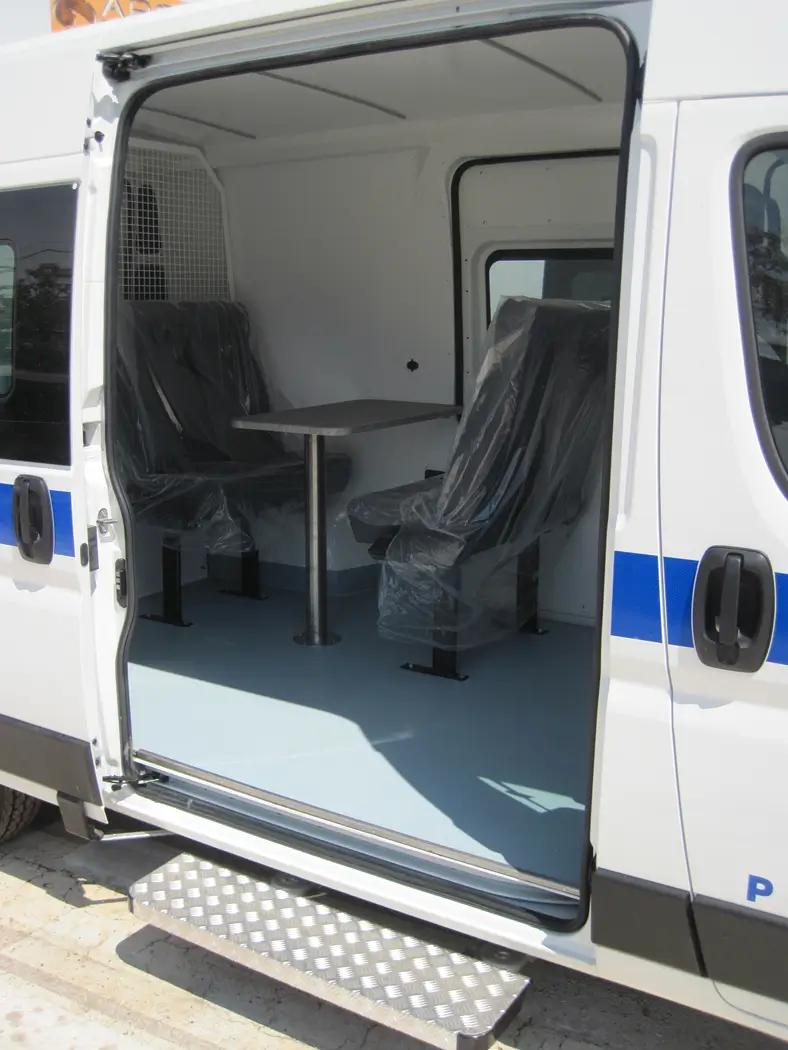 - Βασικός Εξοπλισμός: Ενισχυμένες εσωτερικές κατασκευές και διαχωριστικά ασφαλείας. ασφαλείς και απομονωμένοι χώροι κράτησης με λείες, ανθεκτικές επιφάνειες για εύκολο καθαρισμό, συστήματα επιτήρησης (CCTV) και επικοινωνίας μεταξύ της καμπίνας οδηγού και του χώρου κράτησης.