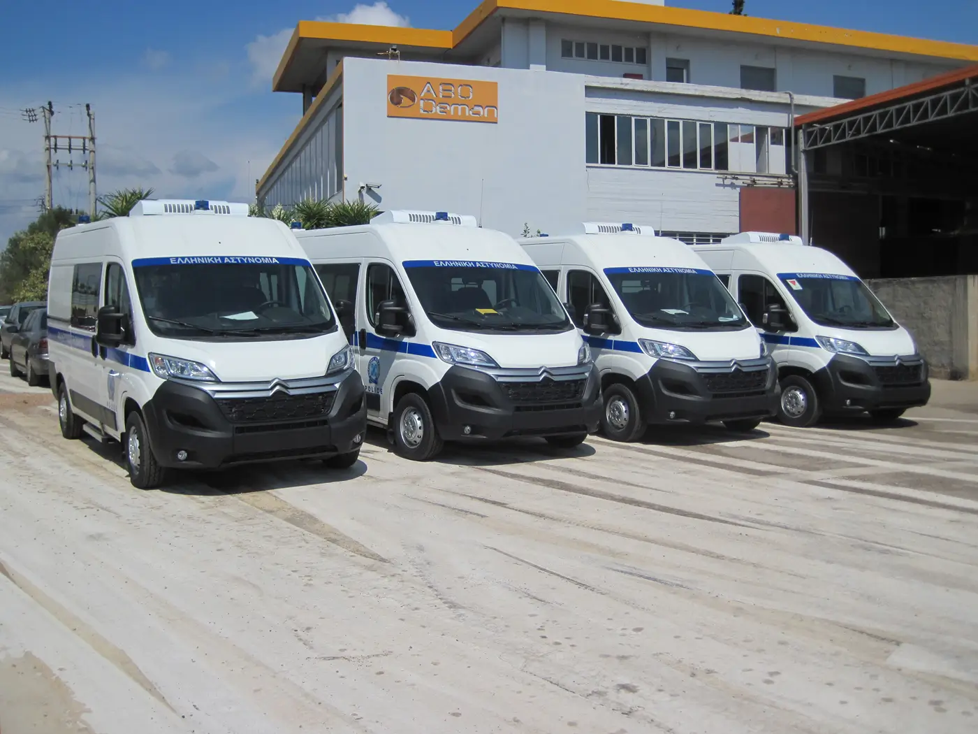 Η ABO DEMAN σχεδιάζει και κατασκευάζει εξειδικευμένα οχήματα για τις ανάγκες της Ελληνικής Αστυνομίας και των Υπηρεσιών Τροχαίας, παρέχοντας αξιόπιστα εργαλεία για την καθημερινή μάχη της δημόσιας τάξης και της οδικής ασφάλειας.