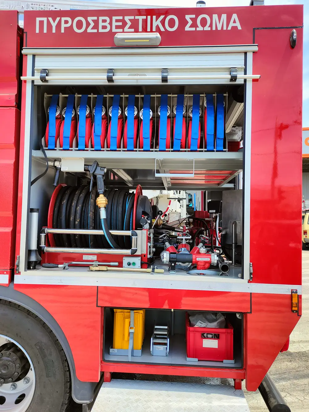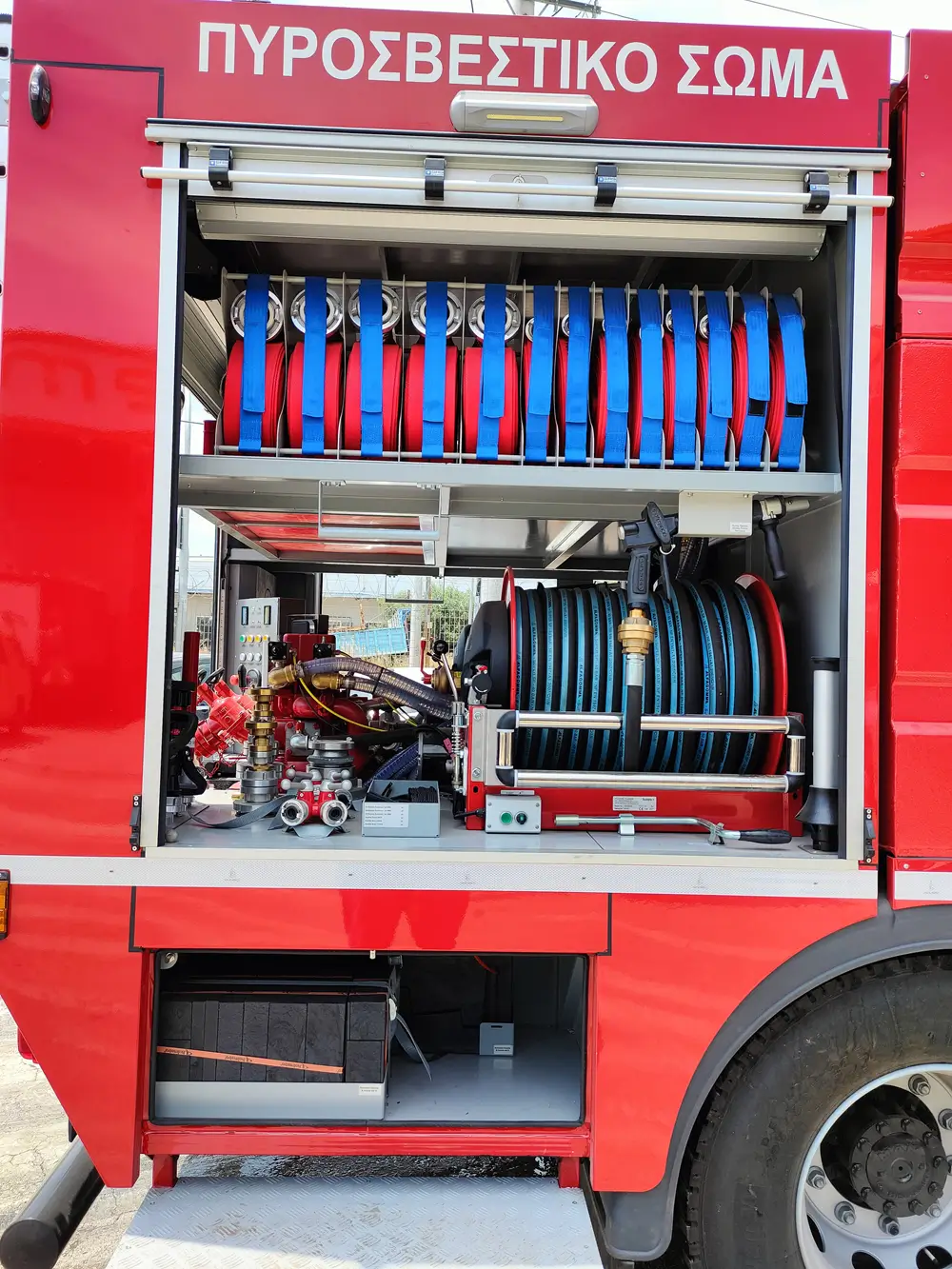 Ενσωματωμένος τυλιγκτήρας (30-60μ) και δυνατότητα παροχής 250 lpm @ 40 bar για άμεση και αποτελεσματική προσβολή της εστίας.