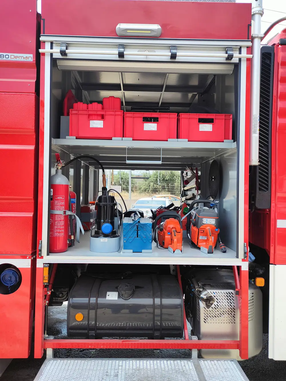 Τα οχήματα διαθέτουν άπλετους και εργονομικά σχεδιασμένους αποθηκευτικούς χώρους για τη μεταφορά πλήρους πυροσβεστικού και διασωστικού εξοπλισμού. Προσφέρουμε πλήρη εξατομίκευση με μια ευρεία γκάμα προαιρετικού εξοπλισμού: