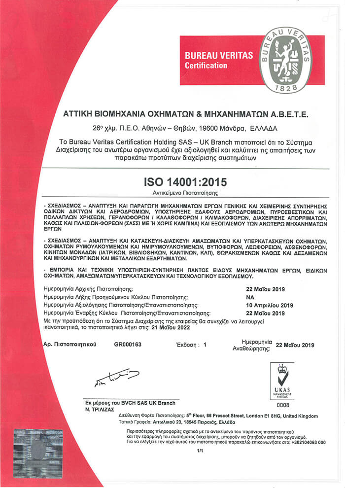 Πιστοποίηση περιβαλλοντικής διαχείρισης κατά ISO 14001.
