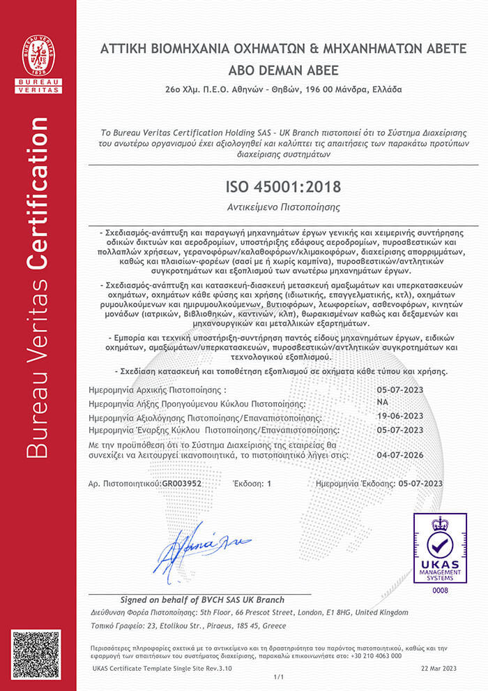 Πιστοποίηση συστήματος υγείας και ασφάλειας στην εργασία κατά ISO 45001