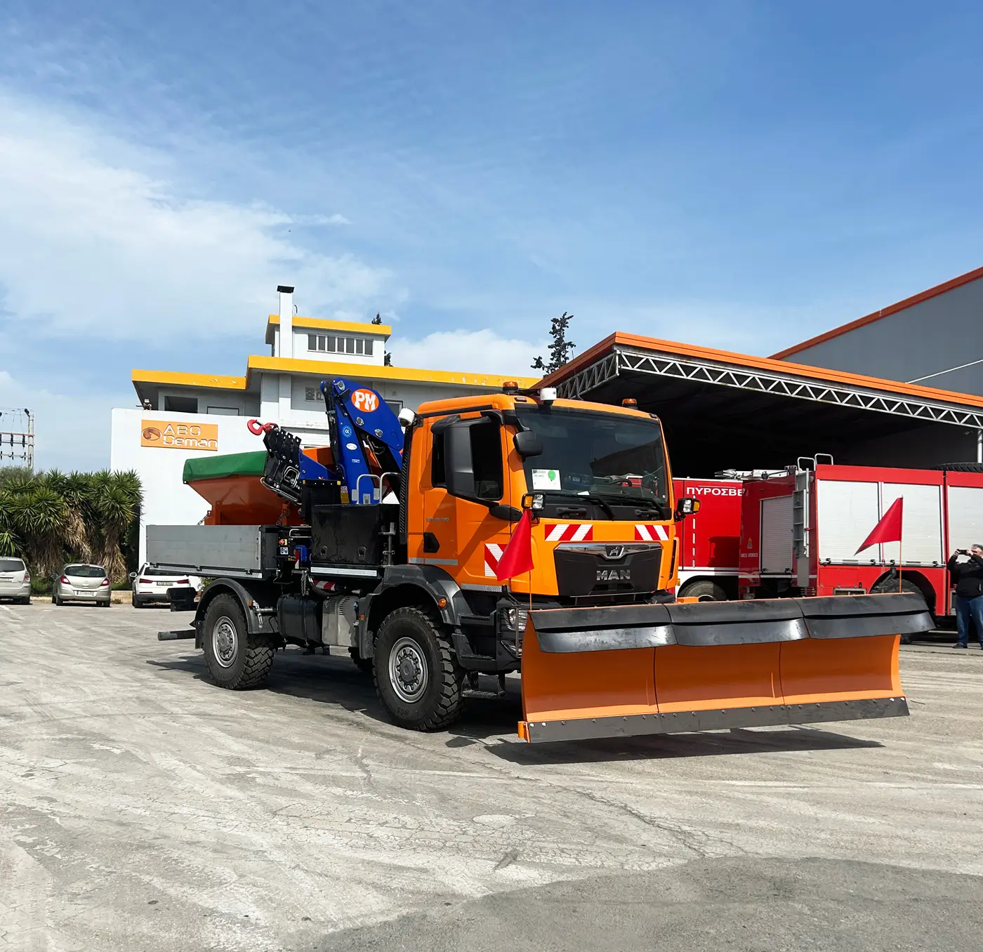 Η ABO DEMAN αναλαμβάνει την πλήρη μελέτη και εγκατάσταση του συστήματος εκχιονισμού, διασφαλίζοντας την τέλεια ολοκλήρωση (integration) με τα ηλεκτρικά και υδραυλικά συστήματα του οχήματος, καθώς και την πιστοποίηση της πλάκας DIN. Παρέχουμε άμεση τεχνική υποστήριξη και διαθεσιμότητα ανταλλακτικών για την αδιάλειπτη λειτουργία του στόλου σας.