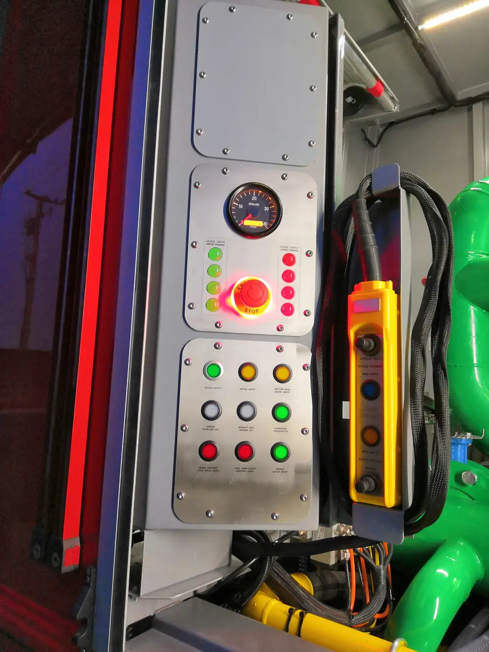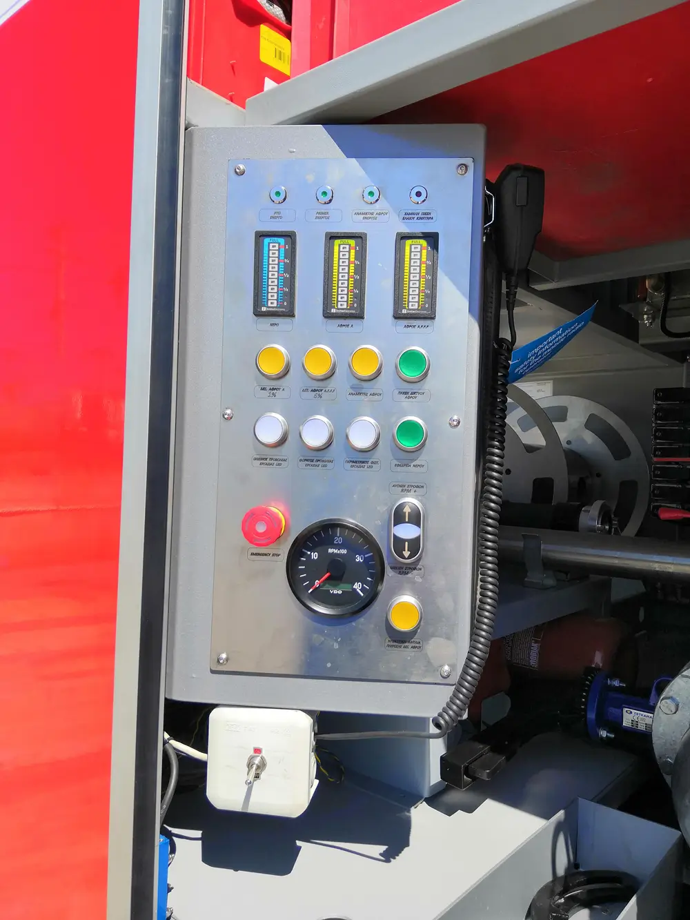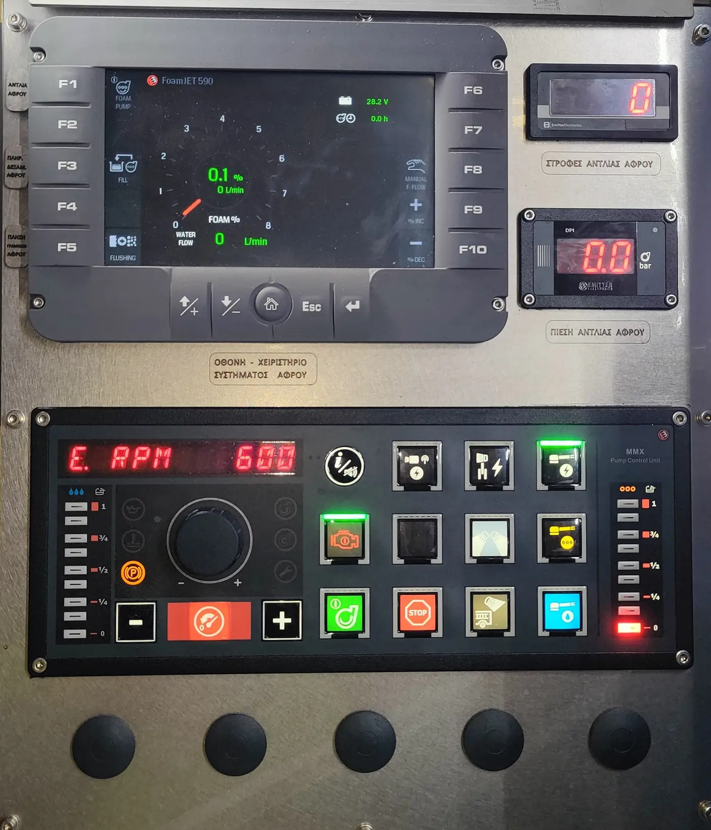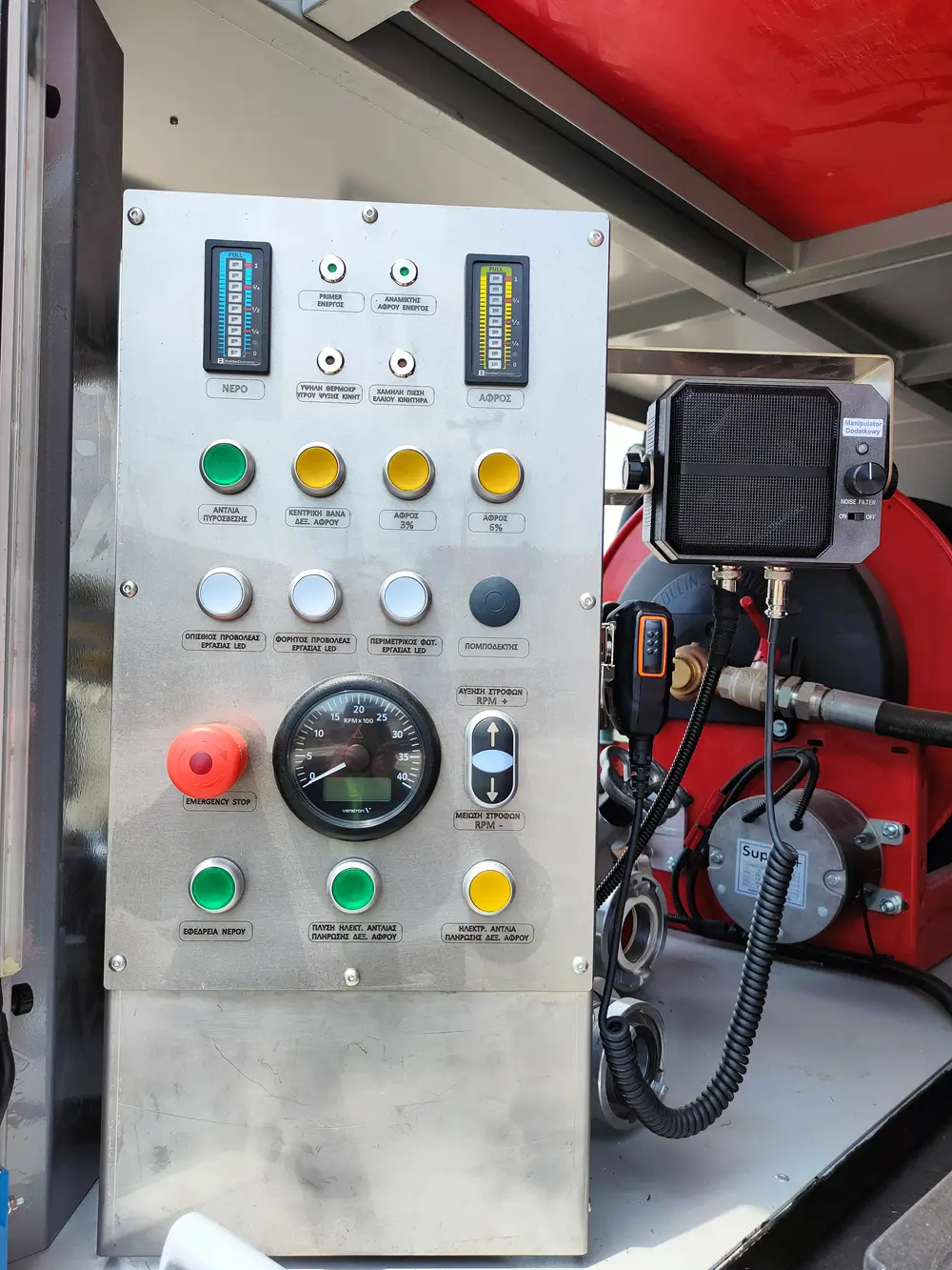 - Ενσωματωμένες Λειτουργίες: Χειριστήρια για το σύστημα ανάμειξης αφρού, τη γεννήτρια, τον φωτισμό εργασίας και τις βάνες.